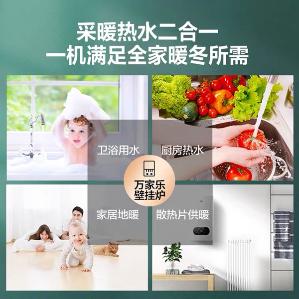 万家乐是一家专业从事清洁能源(燃气)和可再生能源(太阳能、空气能)的高效利用,V系列燃气采暖热水炉创先采用了全预混冷凝技术 ,智能预混空气和燃气,通过引射作用将燃烧所需的空气全部吸入到预混腔内,在风机离心力的作用下使空燃比达到*比例,形成“可燃预混气体”进入360度立体燃烧器,实现百分百燃烧,大幅度提高了热效率。万家乐壁挂炉机内加载欧洲原装进口一体式铸铝冷凝换热器,大换热面积,充分吸收烟气中的高温余热(烟气中水蒸气潜热基本被充分吸收和利用),超低温排烟温度。热效率高达107%,实现1级能效,比普通燃气壁挂炉节约使用成本18%—25%。